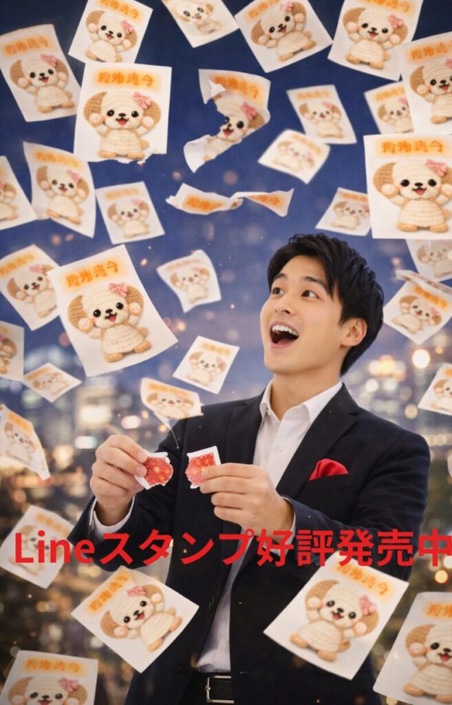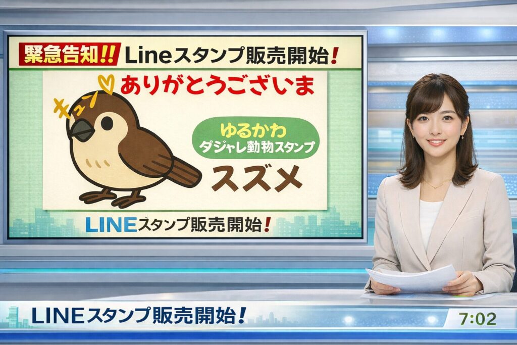 LINEスタンプの販売促進を想定した広告ビジュアルです。